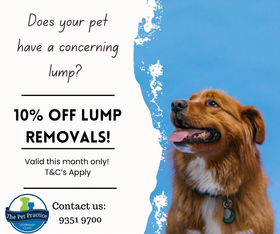 Have you noticed a new lump or bump on your pet? March is the perfect time to have it checked — and removed if needed — with 10% off all lump removals performed this month.